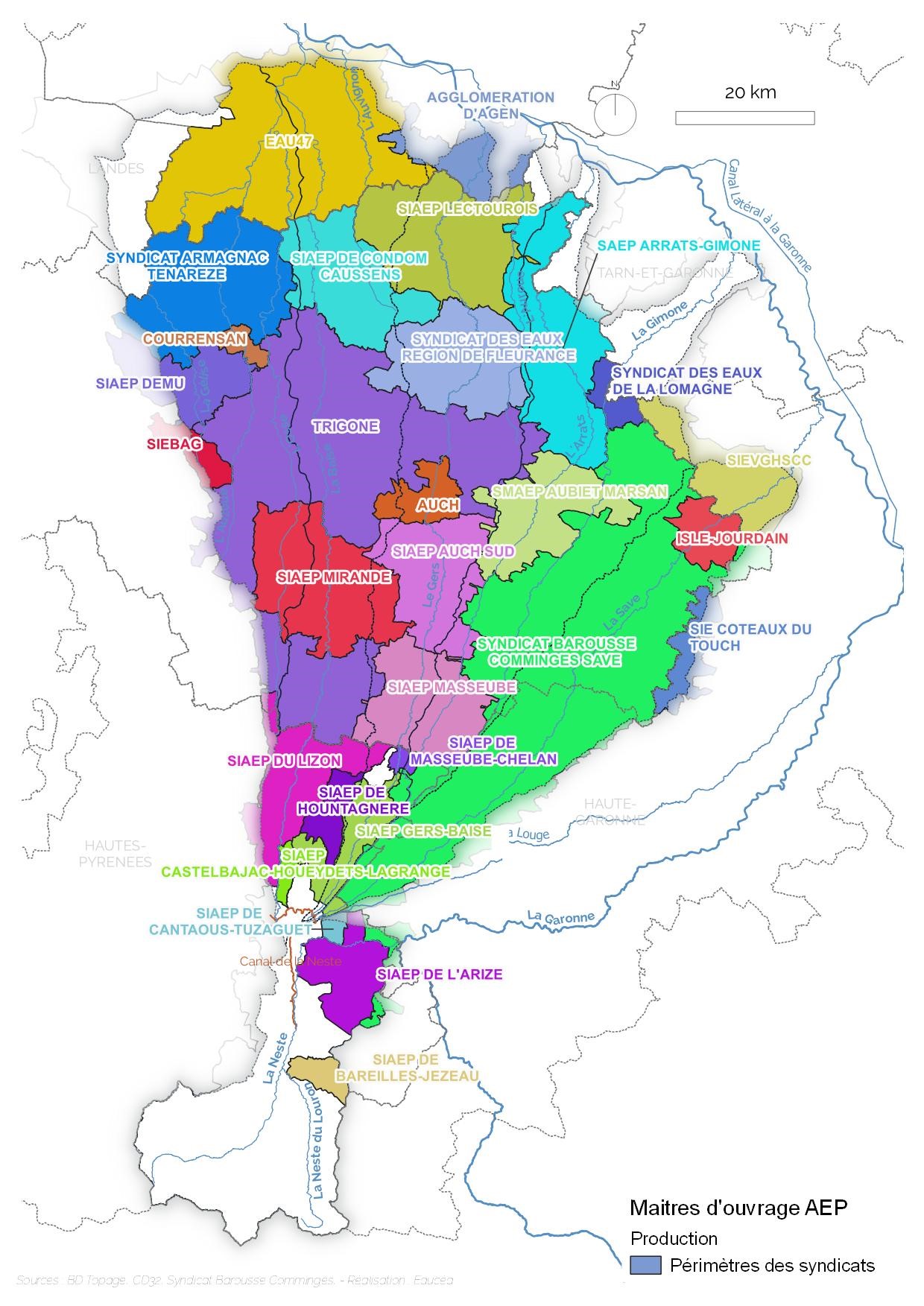 - Syndicat Mixte des 3 Vallées (SM3V), pour la gestion du bassin versant du Gers
