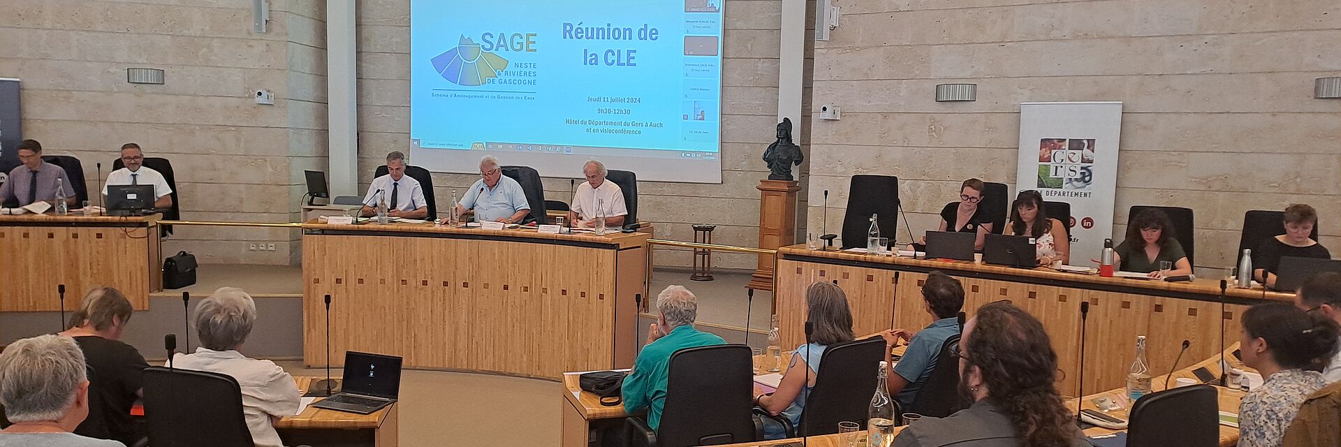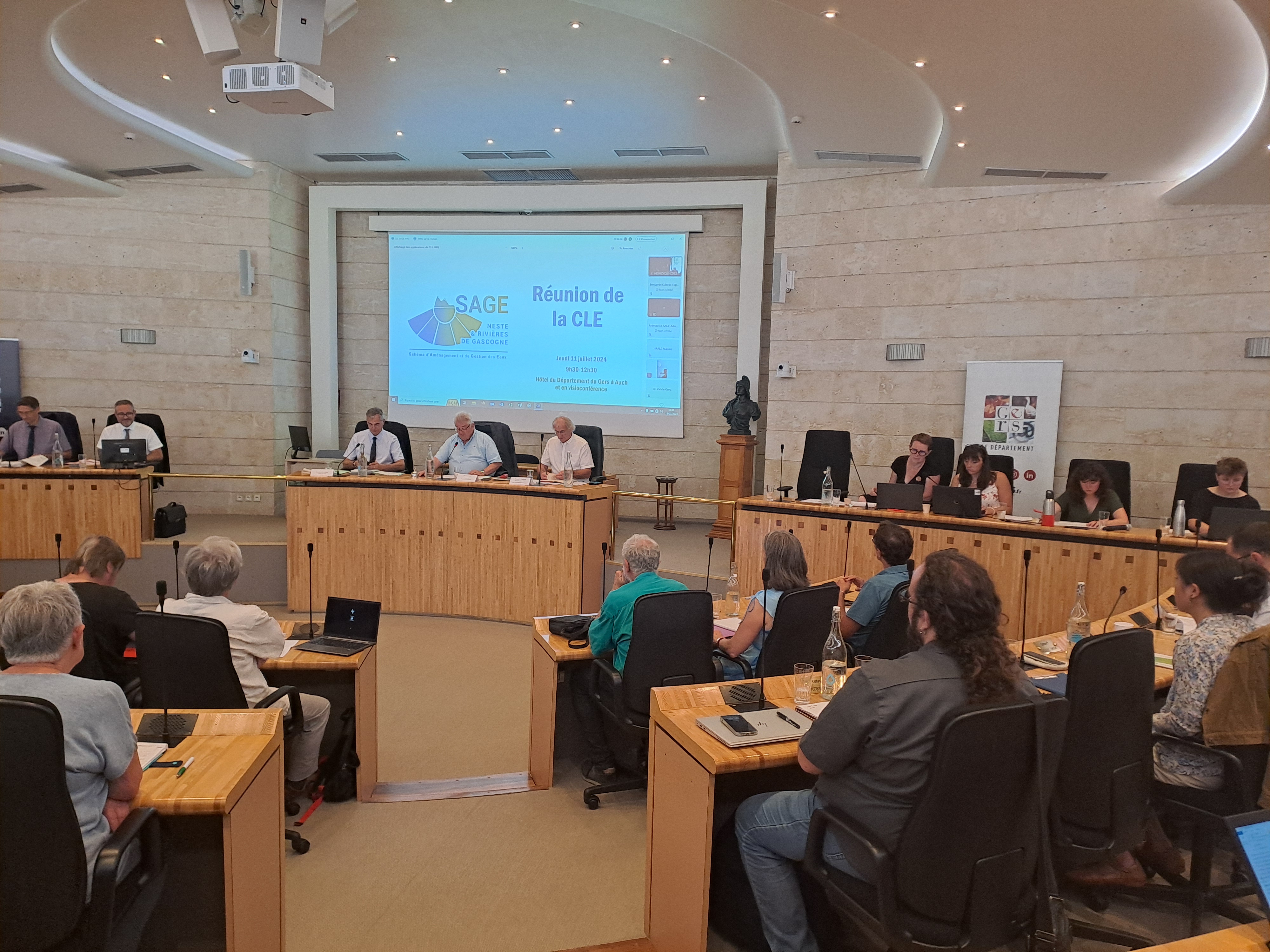 La Commission Locale de l’Eau (CLE) Neste et Rivières de Gascogne s’est réunie pour la cinquième fois le 11 juillet 2024 à l’hémicycle du Conseil Départemental du Gers, à Auch. Plus de 80 personnes étaient présentes durant cette matinée riche en échanges.