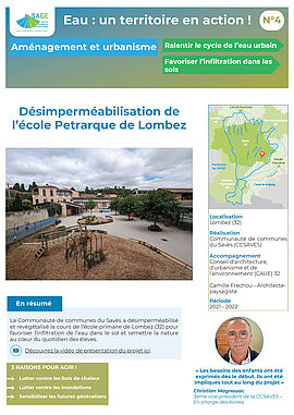 La Communauté de communes du Savès a désimperméabilisé et revégétalisé la cours de l’école primaire de Lombez (32) pour favoriser l’infiltration de l’eau dans le sol et remettre la nature au coeur du quotidien des élèves.