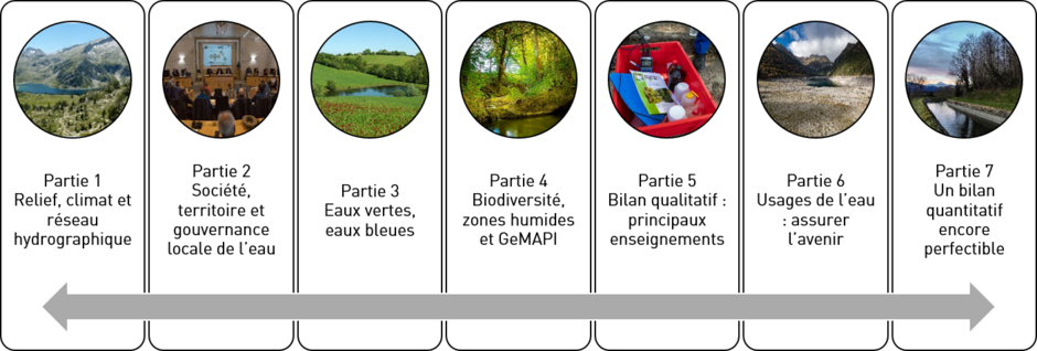 Les cartes et données géoréférencées sous format SIG (Système d’Information Géographique) sont ordonnancées en miroir du rapport d’état initial-diagnostic du territoire, structuré en 7 grandes parties :