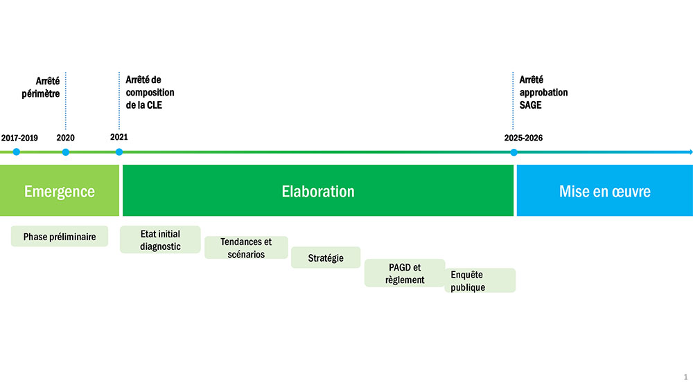 La SAGE se compose d’un plan d’aménagement et de gestion durable (PAGD) et d’un règlement. Une fois approuvé, ce document acquiert une véritable portée juridique. Il sert de guide pour tous les sujets liés à l’eau du territoire.