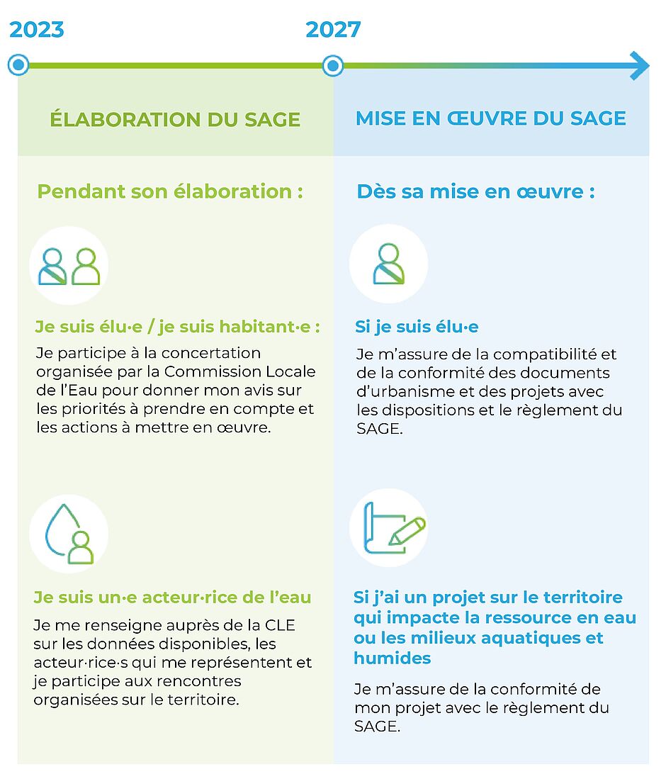 Son rôle est de mettre en débat, planifier et réglementer, via la Commission Locale de l’Eau (CLE) qui s’appuie sur les acteurs de l’eau du territoire, les experts et les citoyens.